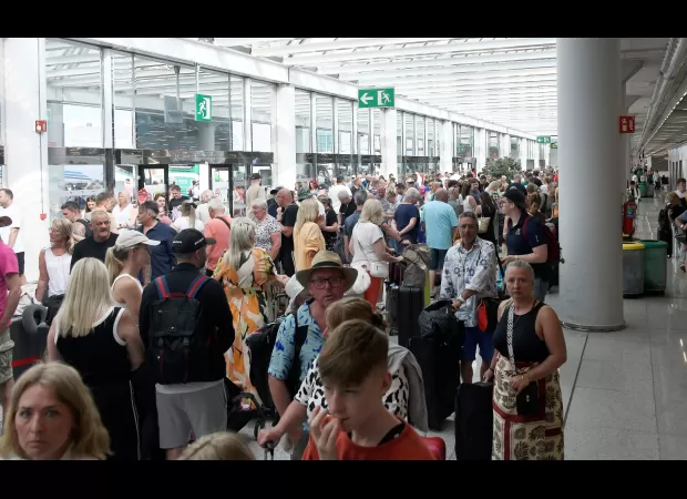 "Chaotic scenes at airports as Microsoft glitch causes worldwide travel disruption."