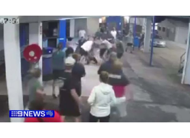 A chaotic scene unfolded at a greyhound track in Sydney's north-west as a group of people engaged in an intense brawl. This incident occurred on a night that was meant to be a fun and festive one for children, as they were invited to meet Santa at the Richmond Race Club. However, the atmosphere quickly turned violent as a single individual was seen running from the altercation before a group of men came tumbling into view.